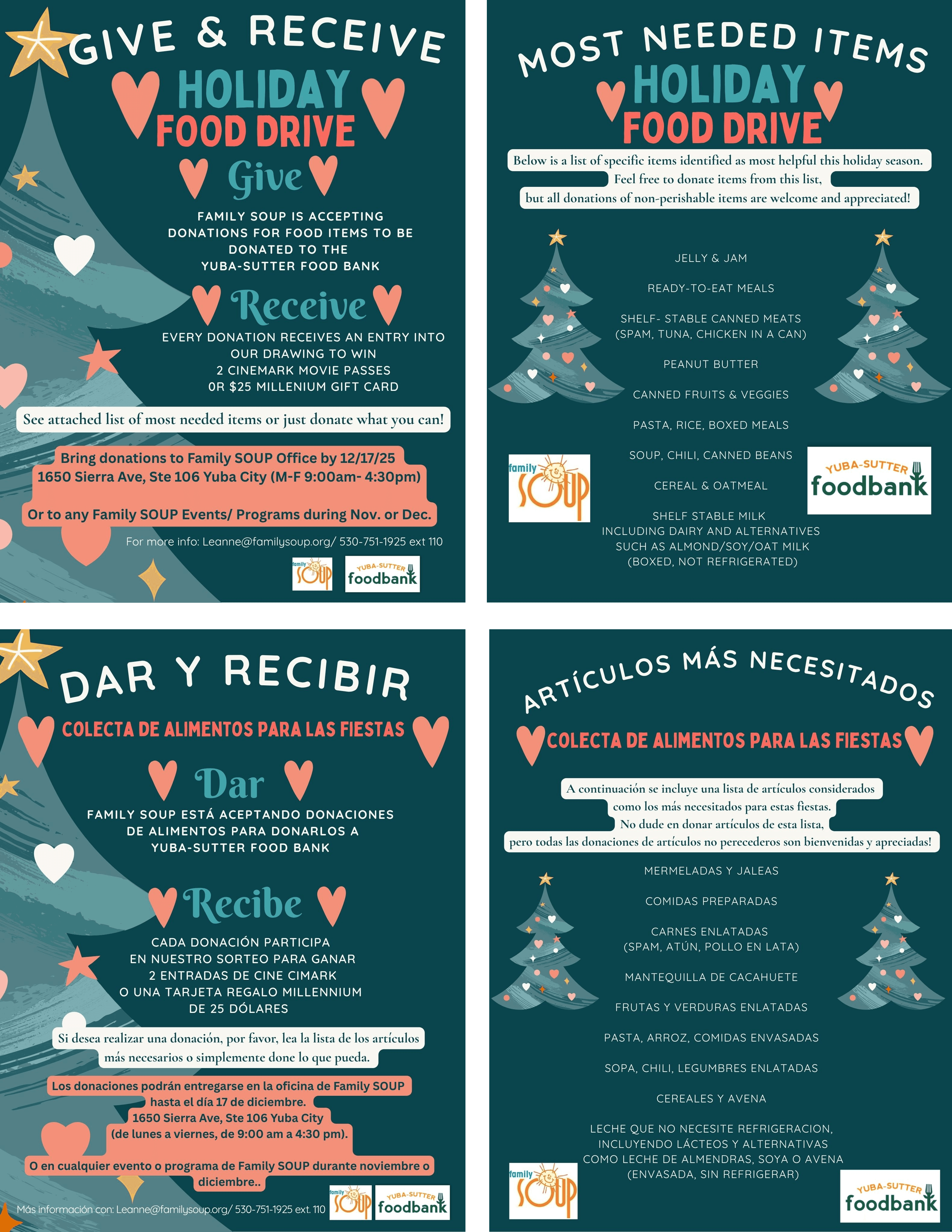 Family SOUP is accepting donations for food items to be donated to the Yuba-Sutter Food Bank.