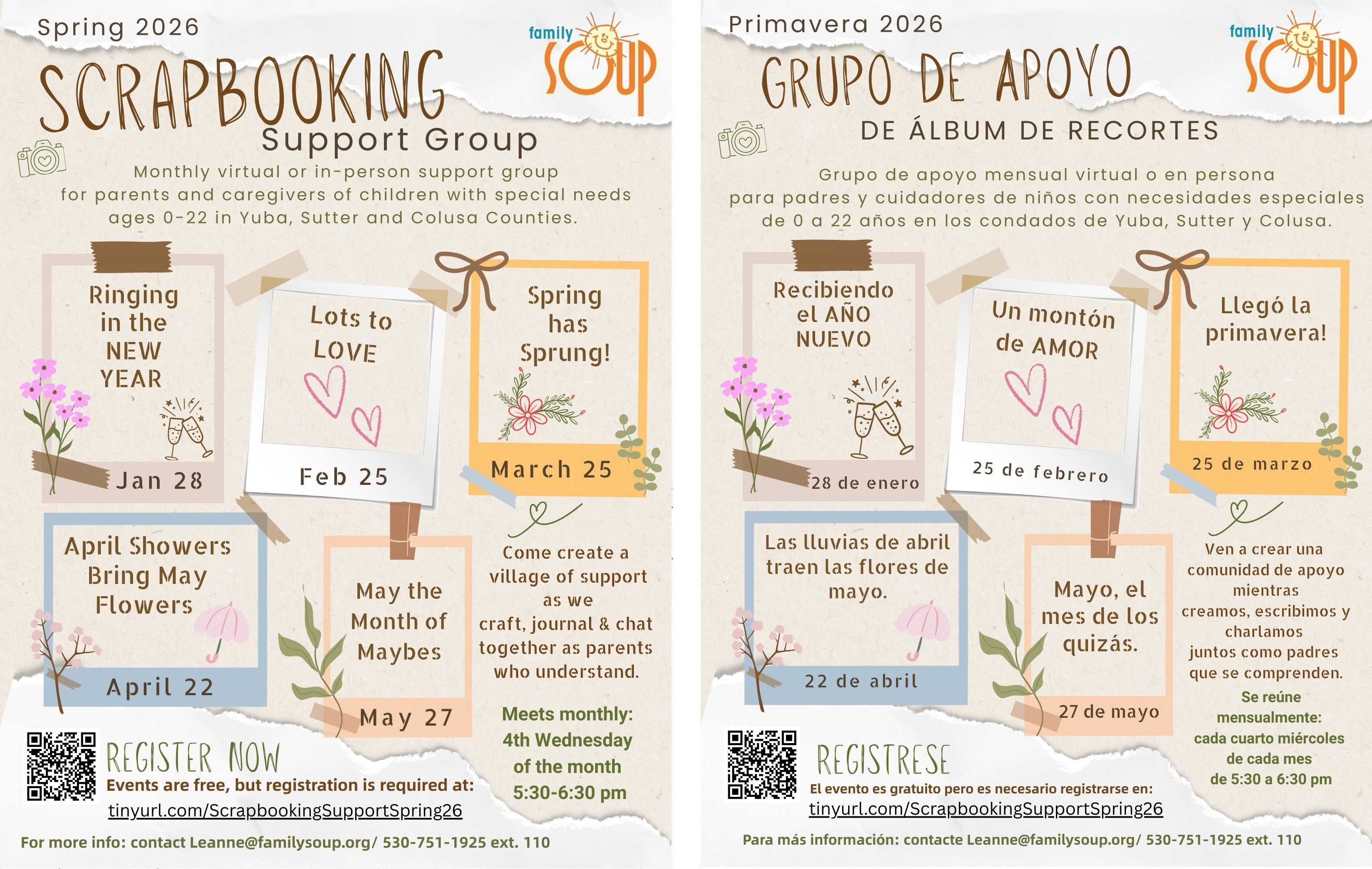Registrese en https://tinyurl.com/ScrapbookingSupportSpring26