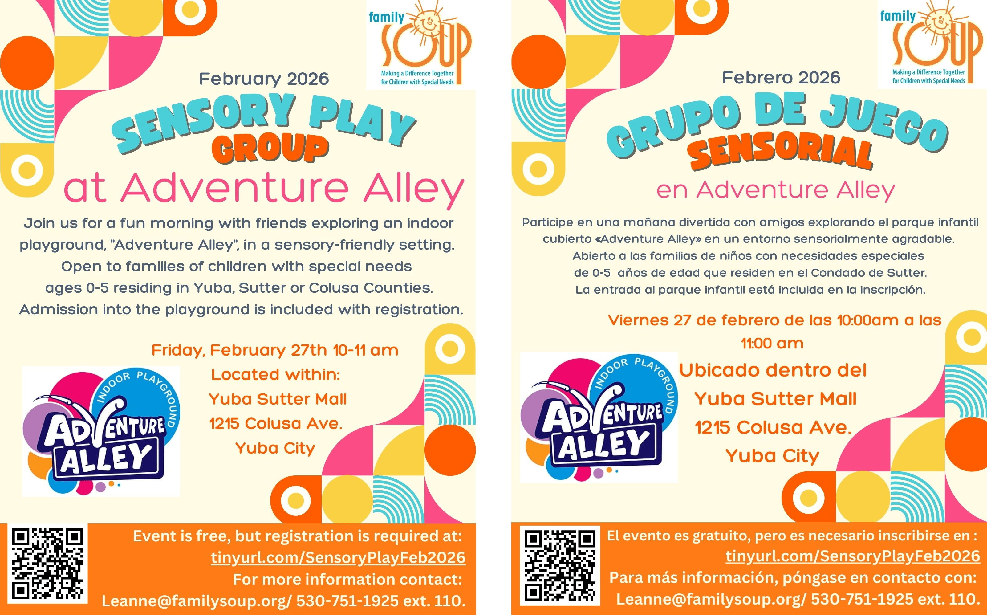 Open to families of children with special needs ages 0-5 residing in Yuba, Sutter or Colusa County. Admission into the playground is included in registration.